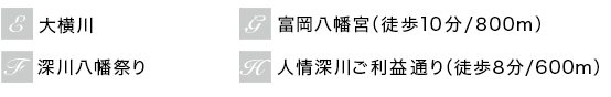 | みずほ銀行深川支店 | 徒歩2分(約140m) |
